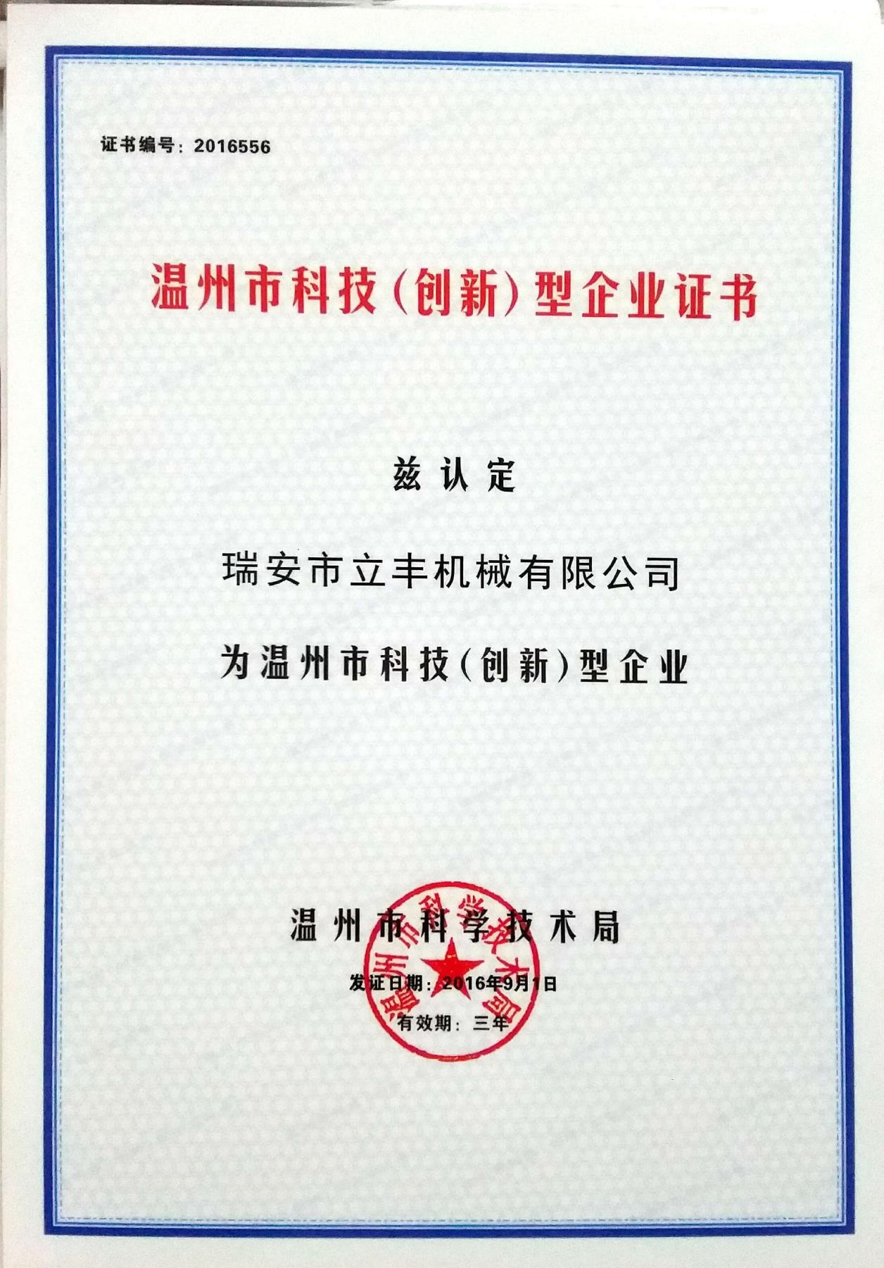 熱烈祝賀瑞安市立豐機械有限公司被... 2016-11-09